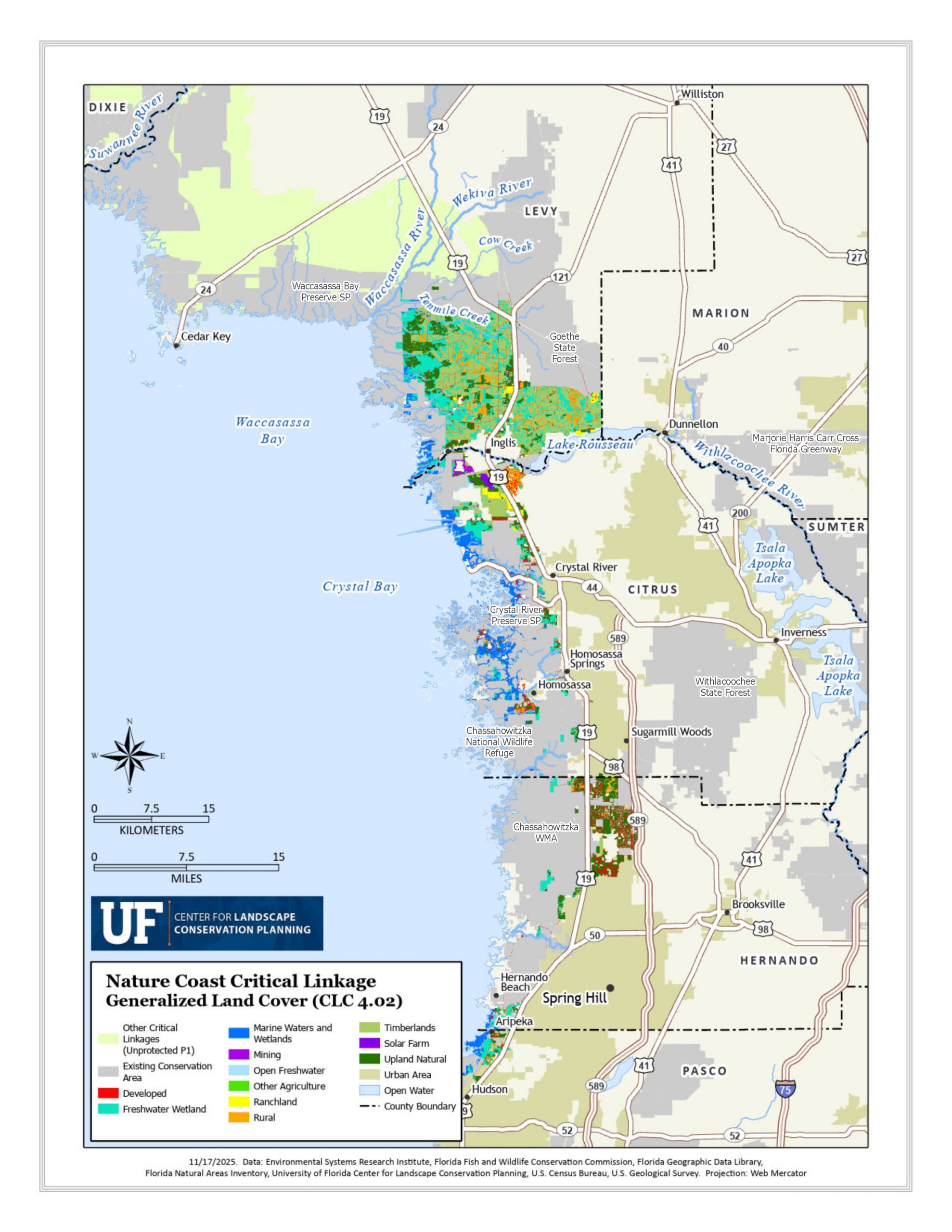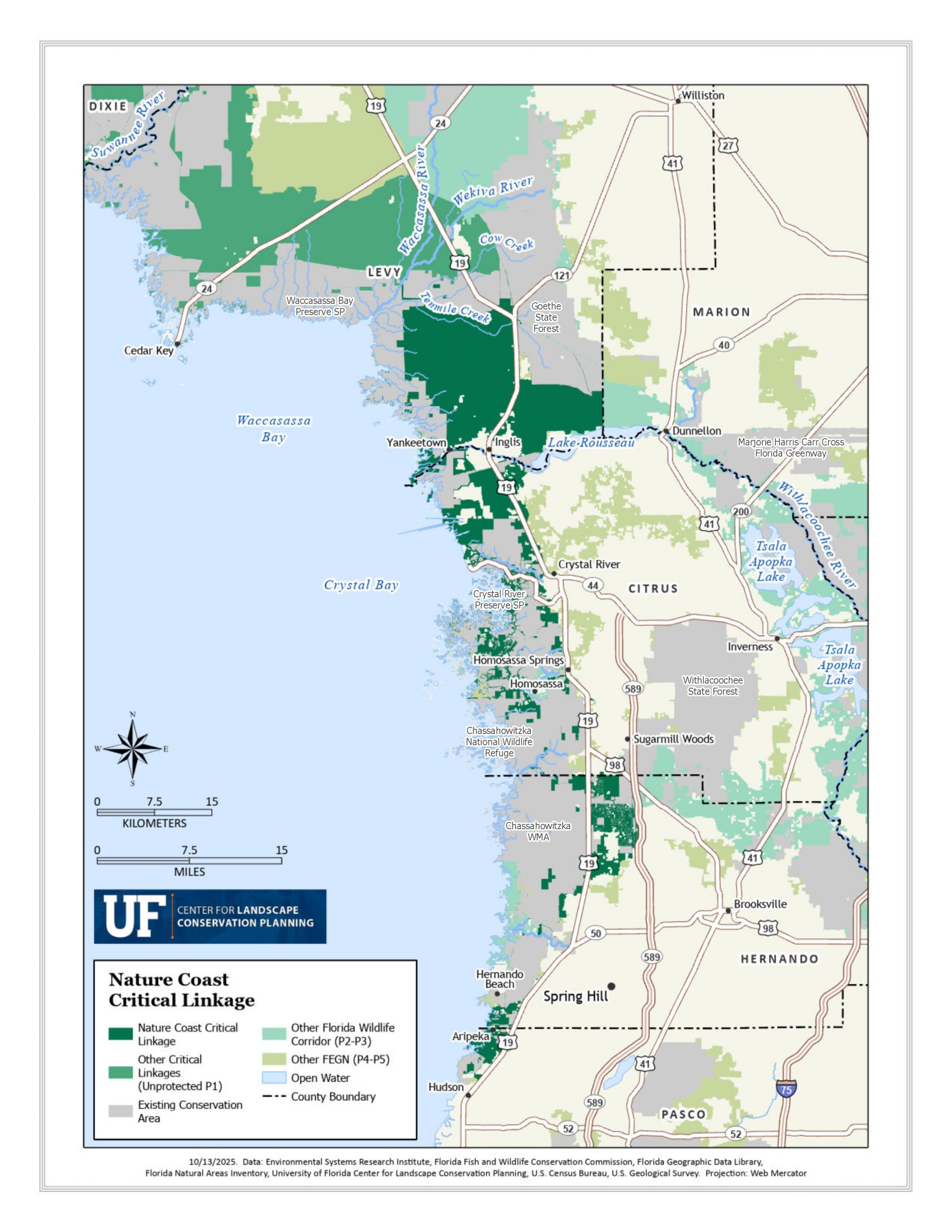 The Eglin–Perdido Critical Linkage is Florida’s westernmost corridor, connecting to Alabama and supporting some of the most biologically diverse and globally rare habitats in the state. The landscape includes a significantly large tract of upland pine habitat along the Perdido River, along with pitcher plant bogs, bottomland forests, blackwater streams, and other rare natural communities. Its timberlands provide wildlife habitat, carbon storage, and opportunities for long-term ecological restoration—particularly of historic longleaf pine ecosystems. While the region faces growing development pressure, its protection is essential to maintaining ecological resilience and wildlife connectivity across the northern Gulf Coast.